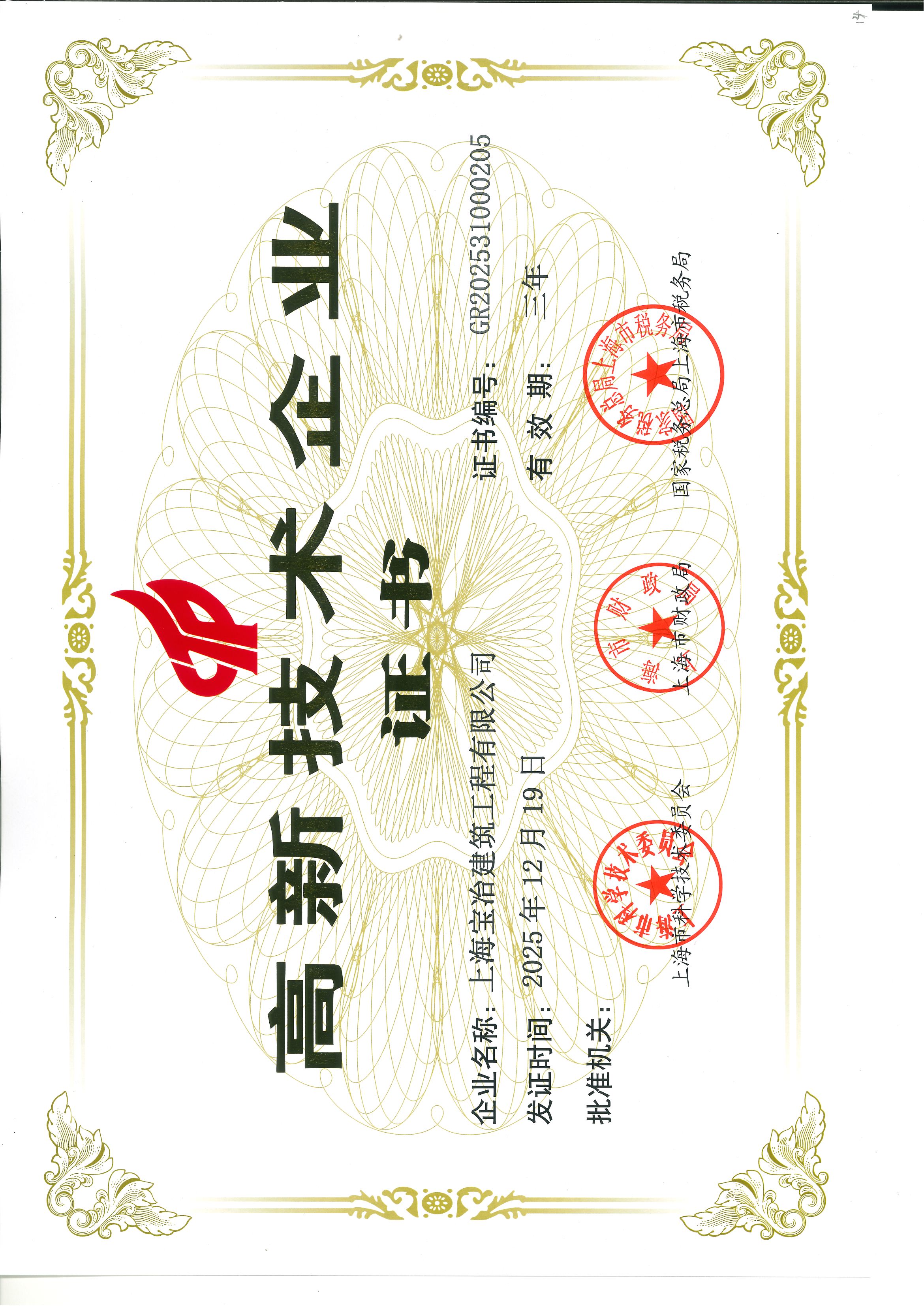 近日,高新技术企业认定管理工作小组传来喜讯,上海宝冶建筑工程有限公司顺利通过复审,再次荣获“高新技术企业”认定。这标志着公司在技术研发与规范化管理方面持续获得相关部门认可。